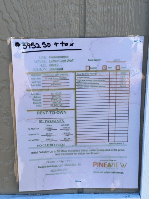 08×12 Lofted Low Wall Storage Shed for sale in Augusta, GA – SN 055070